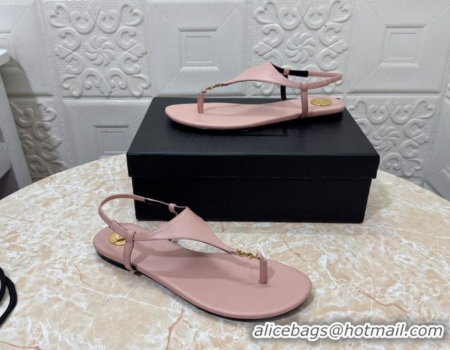 Design Cheap Saint Laurent Cassandra Flat Thong Sandals in Calfskin Light Pink 0825128