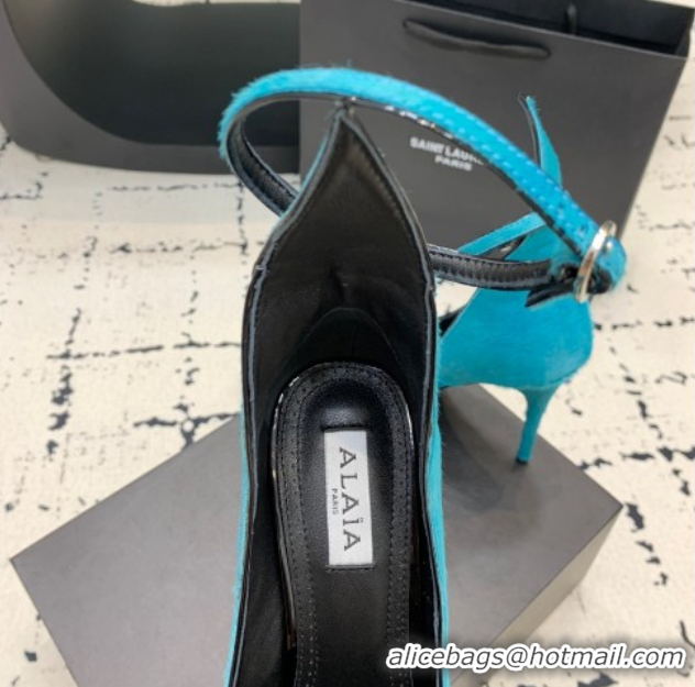 Good Looking Alaia Decollete Pumps 10.5cm in Haircalf with Ankle Strap Blue 1223065