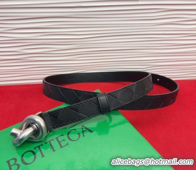 Discount Bottega Veneta Intrecciato Leather Belt 2cm with Knot Buckle BV26010402 Black/Silver 2025