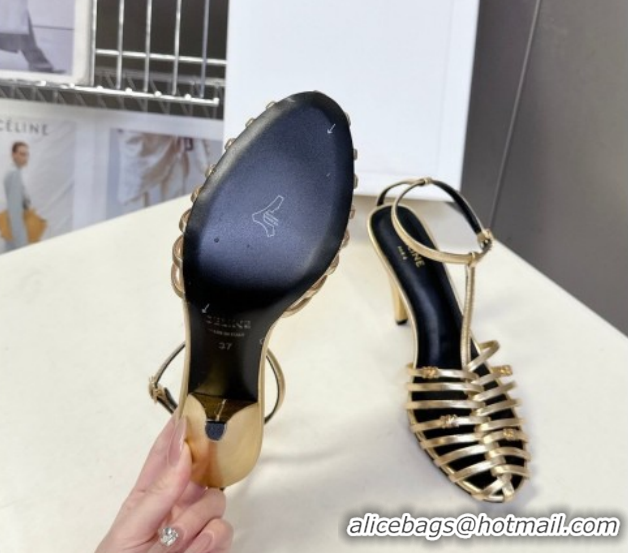 Discount Celine Cage Heeled Sandals 8cm in Calfskin Leather Gold 0227024 2026