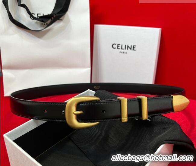 Discount Celine Western Medium Leather Belt 2.5cm with Pin Buckle CE011004 Black/Aged Gold 2025