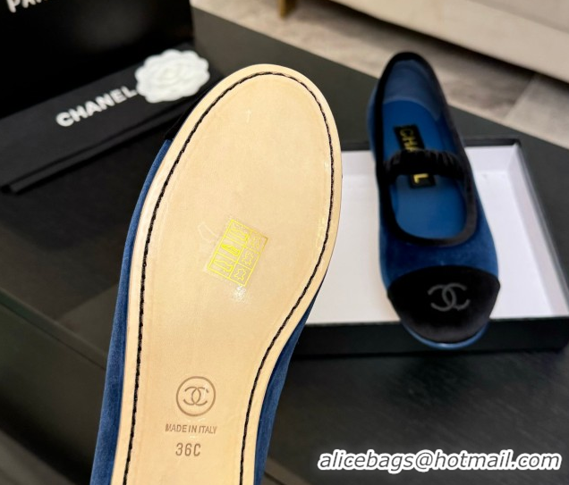 Purchase Chanel Velvet Mary Janes Ballet Flats with Bow G46542 Blue 2026