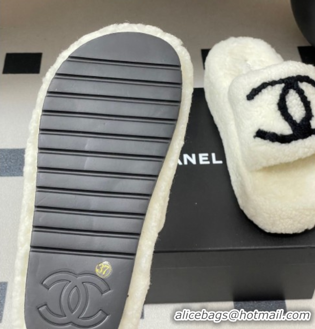 Pretty Style Chanel Wool Platform Slides Sandal with Maxi CC White 2025 CH110306 1103088