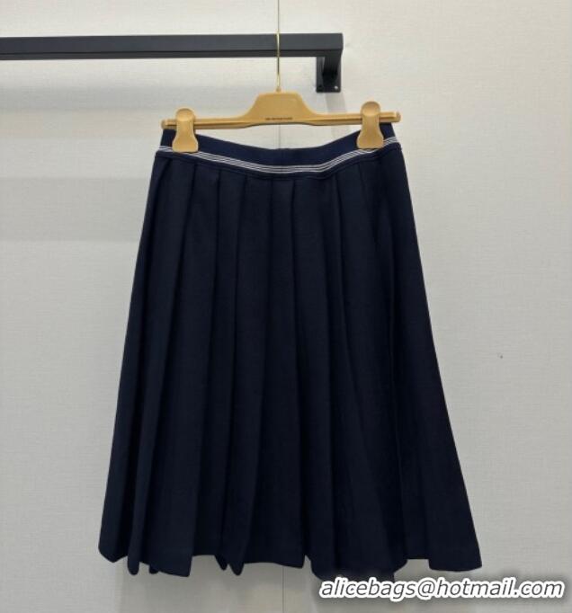 Super Quality Miu Miu Cashmere Pleated Skirt MM111426 Dark Blue 2025