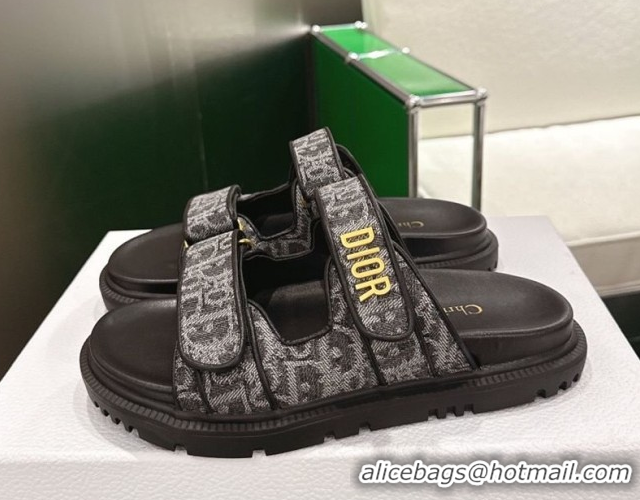 Luxury Dior Dioract Flat Slides Sandal in Oblique Embroidered Denim Black 2026 60302116