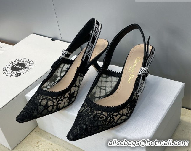 Popular Style Dior J'Adior Slingbacks Pump 6.5cm in Transparent Mesh Embroidered with Millefiori Motif Black 2026 030204