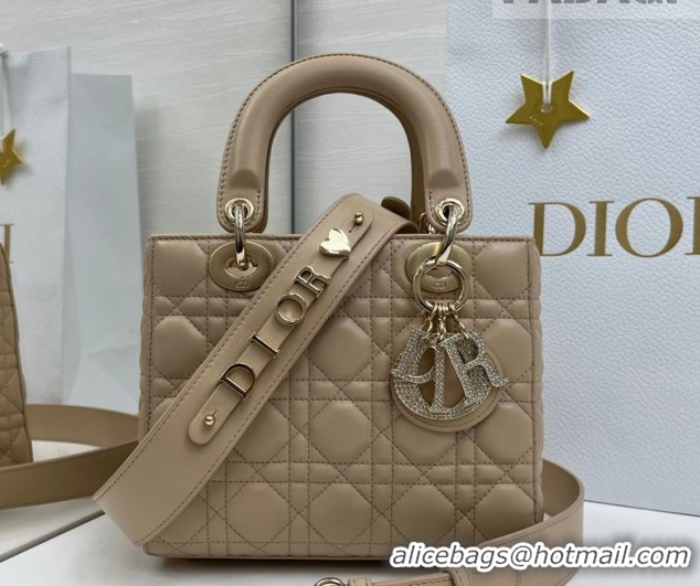 Discount Dior Small Lady Dior My ABCDior Bag in Cannage Lambskin Leather with Strass Charm Dusty Beige 0126051 2026