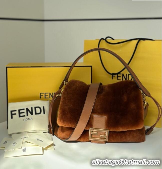 Shop Cheap Fendi Mamma Baguette Medium Bag in Shearling 8693L Brown 2025 Top