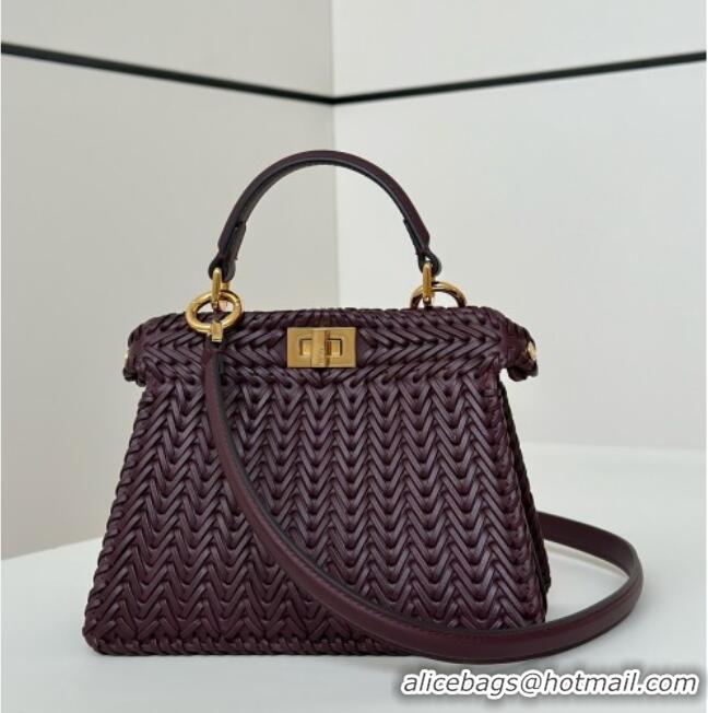 Modern Classic Fendi Peekaboo ISeeU Petite Bag in Interlaced Leather 80138S Burgundy 2025 Top