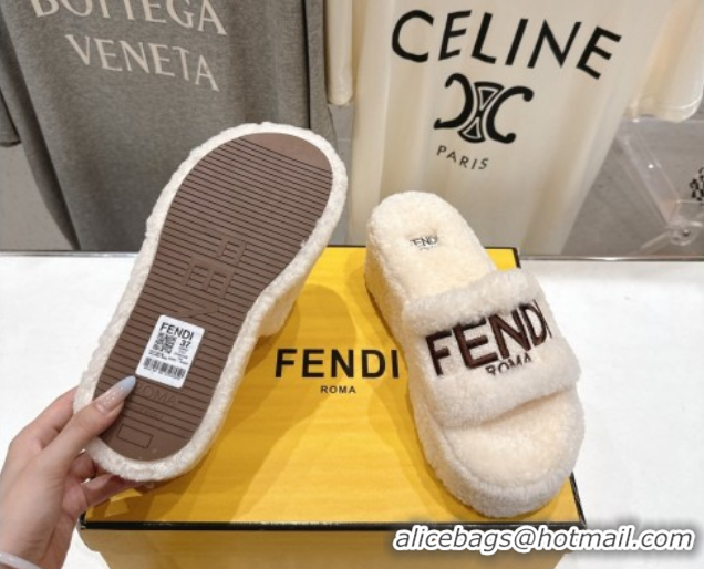 Discount Fendi Sunshine Platform Slides Sandal in Shearling Wool White 2025 FE103001 1030009