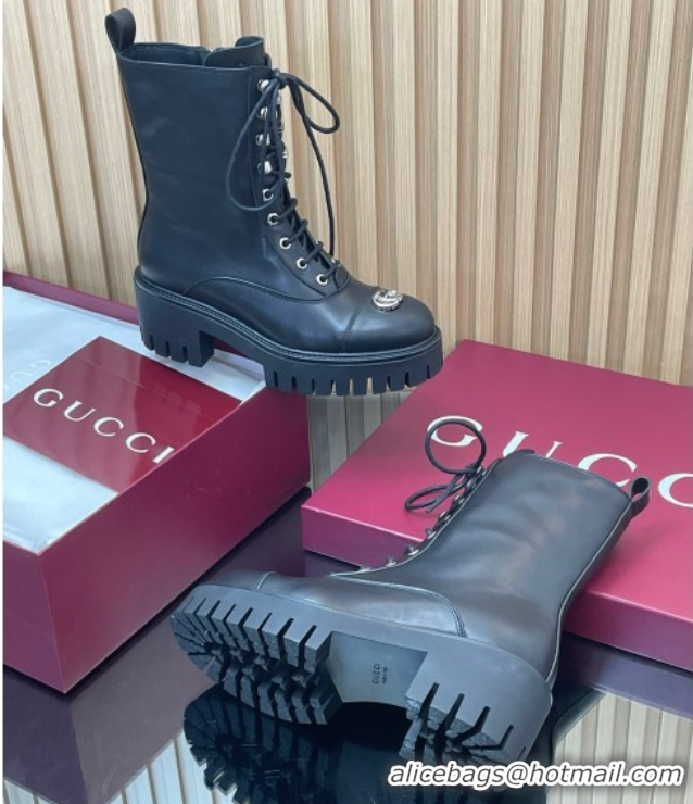 Your Position: Home > Shoes Plaza > Gucci Shoes > Discount Gucci Calf Leather Lace-up Ankle Boots 6cm with GG 1021073