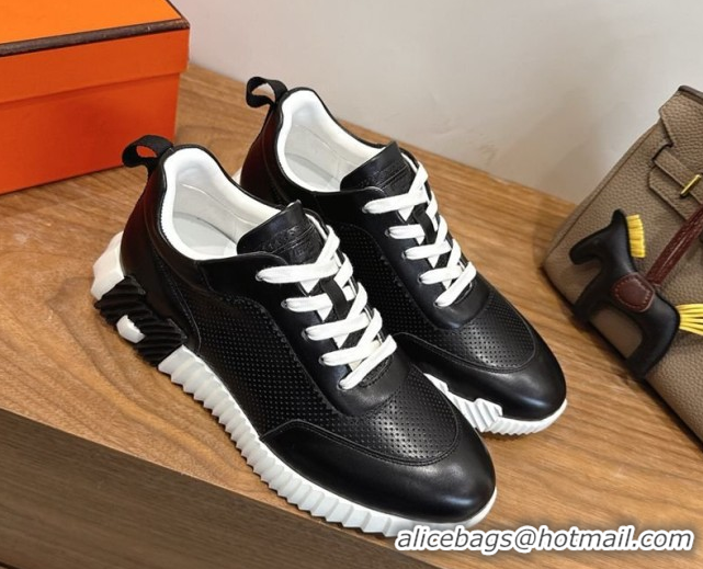 Shop Duplicate Hermes Bouncing Sneakers in Perforated Calfskin Leather Black/White 2026 H261013