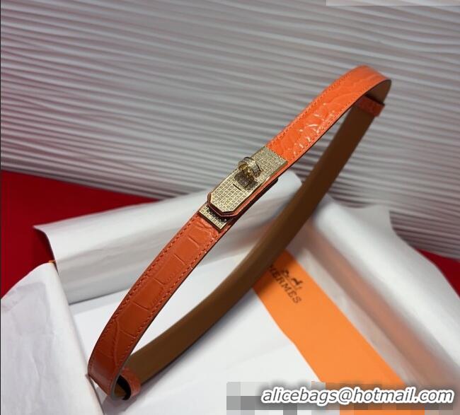Discount Hermes Kelly Duo Belt 1.8cm in Crocodile Embossed Calfskin with Gold Strass Paved Buckle H2011025 Orange 2025