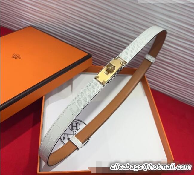 Cheapest Hermes Kelly Duo Belt 1.8cm in Crocodile Embossed Calfskin with Metal-Tone Buckle H2011025 White 2025