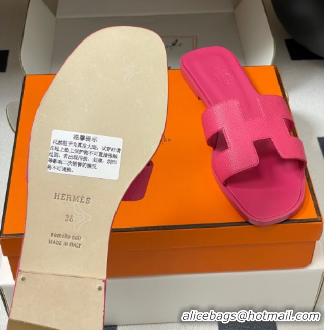 Discount Hermes Oran Classic Flat Slides Sandal in Palm-Grained Calfskin Dark Pink 0819017