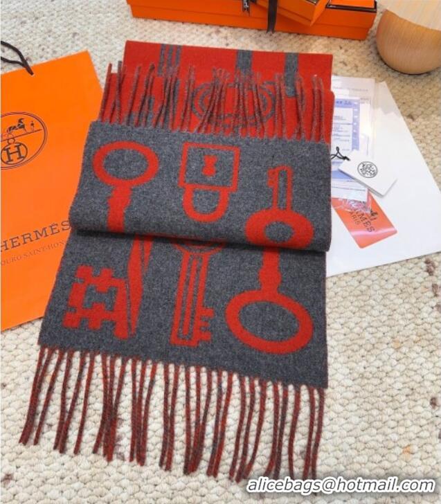 > Scarf Online > Hermes Scarf > Discount Hermes Sciarpa Casaque Porte-Clefs Cashmere Long Scarf 32x180cm 6041 Orange/Grey 2026