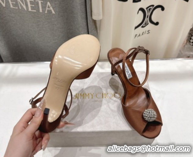 Your Position: Home > Shoes Plaza > Jimmy Choo Shoes > Discount Jimmy Choo Sacora Heel Sandals 8.5cm in Brown Satin with Strass 1210114