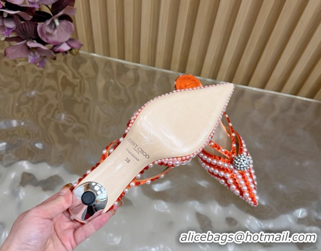 Discount Jimmy Choo Siva Heel Mules in Strass and Pearls Orange 1210149 2026