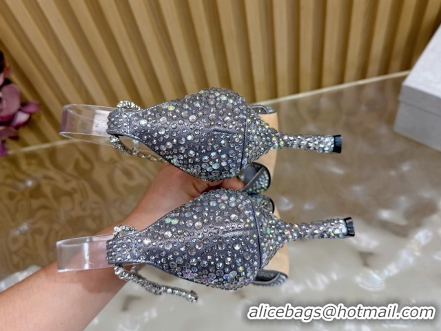 Discount Jimmy Choo Stevie Pumps 9cm in Fabric and Strass with Ankle Strap Silver 1210132