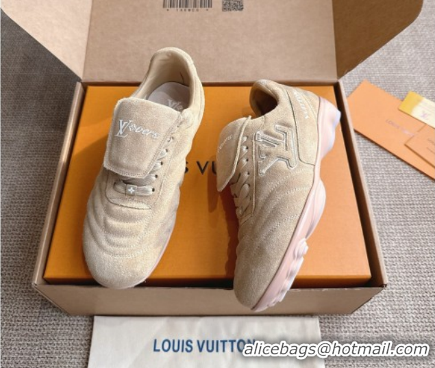 Durable Louis Vuitton LV Footprint Soccer Sneakers in Suede Beige 2025 0303101
