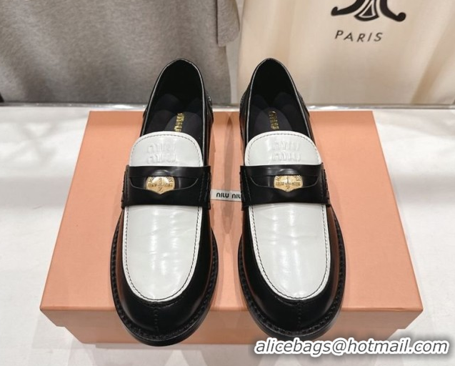 > Shoes Plaza > Miu Miu Shoes > Discount Miu Miu Leather Penny Loafers 5D773D Black/White 2026
