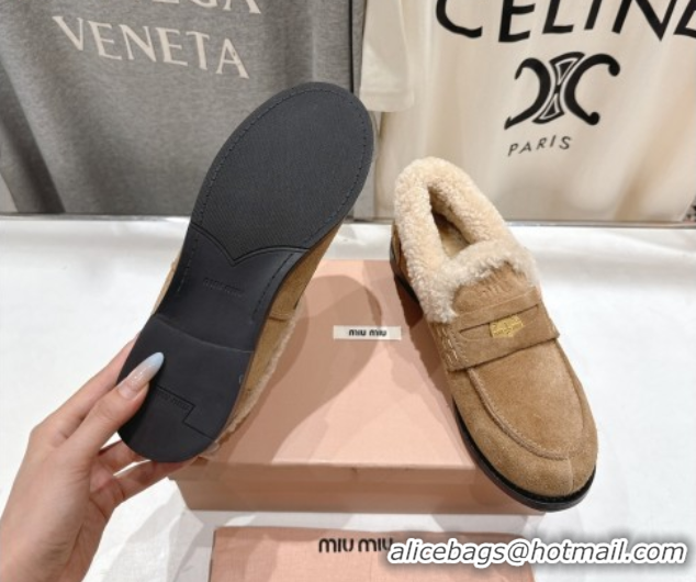 Discount Miu Miu Suede and Wool Loafers with Coin Beige 5D530E 1025062 2025