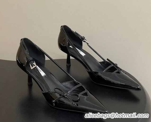 > Shoes Plaza > Prada Shoes > Buy Fashionable Prada Open-side Patent Leather Pumps 5.5cm with Bow Buckle Black 1I442O 0227102