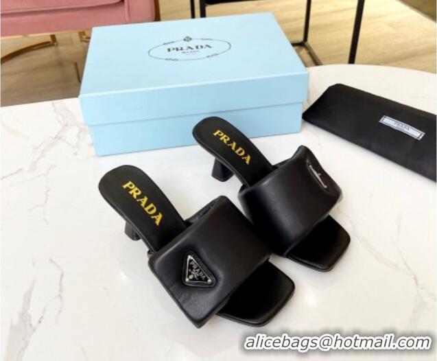Discount Prada Soft Padded Nappa Leather Heel Slide Sandals 6.5cm Black 609116