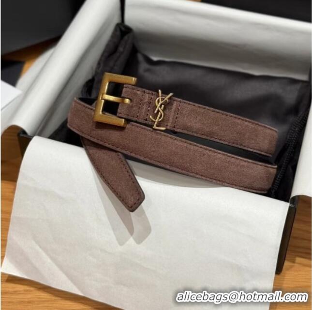 Discount Saint Laurent Cassandre Belt 2cm in Suede and Leather YSL26010401 Dark Brown/Gold 2025