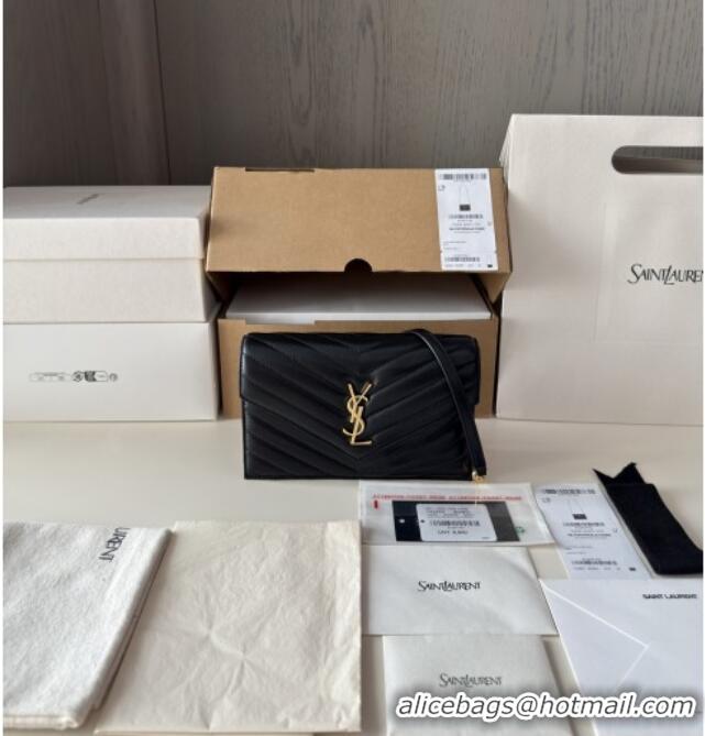 Best Price Saint Laurent Cassandre Matelasse Envelope Chain Wallet in Lambskin 742920 Black 2024 Top Quality
