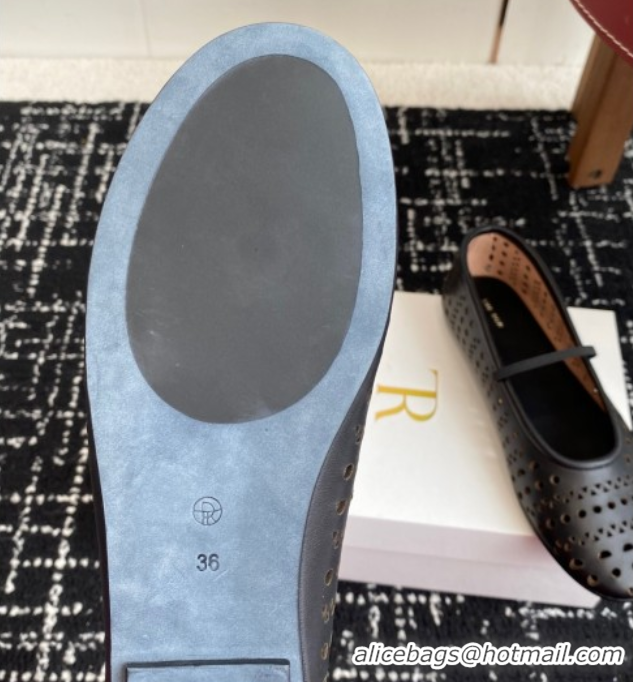 Your Position: Home > Shoes Plaza > The Row Shoes > Discount The Row Elastic Ballet Flat in Openwork Leather Black 0604088