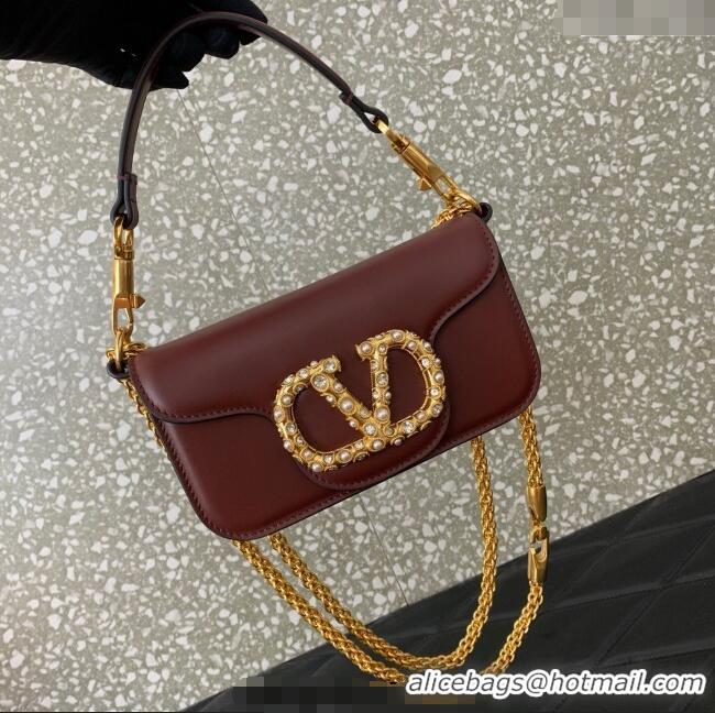 > Valentino Handbag > Top Grade Valentino Garavani Locò Small Shoulder Bag In Calfskin Leather With Jewel Logo 5053 Dark Brown 2025