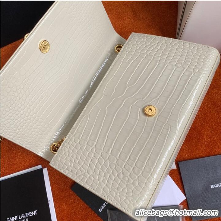 > Yves Saint Laurent Bag > Discount Yves Saint Laurent KATE CHAIN WALLET WITH TASSEL IN CROCODILE-EMBOSSED SHINY LEATHER 452159 WHITE