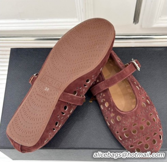 Duplicate Alaia Ballet Flat in Openwork Suede Dark Brown 50224050
