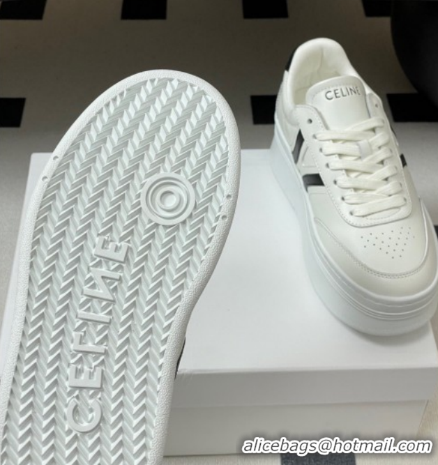 Duplicate Celine Block Platform Sneakers 5cm with Back Triomphe and Wedge Outsole in Calfskin Leather White/Black 1209078 2026