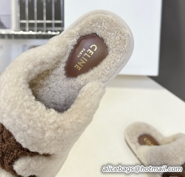 > Shoes Plaza > Celine Shoes > Sophisticated Celine Georgia Flat Slides Sandal in Shearling Light Grey 1024068