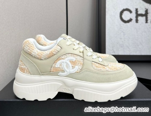 > Shoes Plaza > Chanel Shoes > Duplicate Chanel Calfskin Leather, Suede and Tweed Platform Sneakers Green/Yellow 10 2025 CH110102 1101010