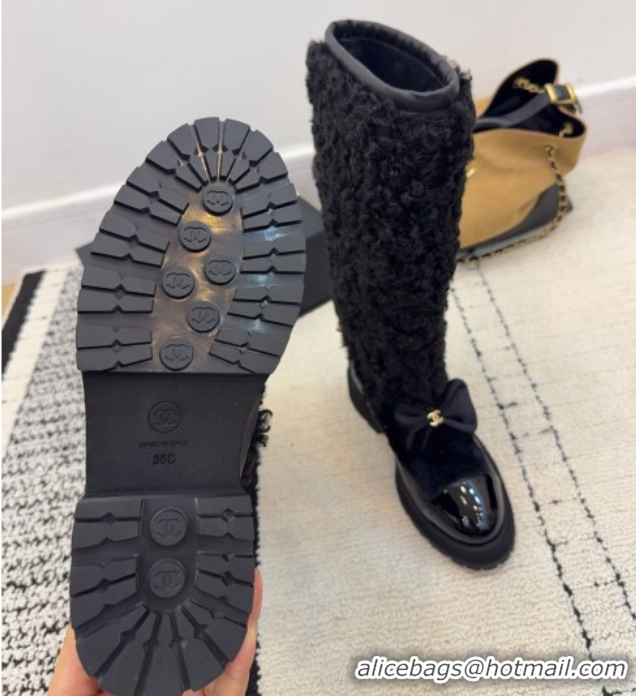 > Shoes Plaza > Chanel Shoes > Duplicate Chanel Fur, Lambskin & Patent Leather Platform High Boots Black 2025 G46637 1103150