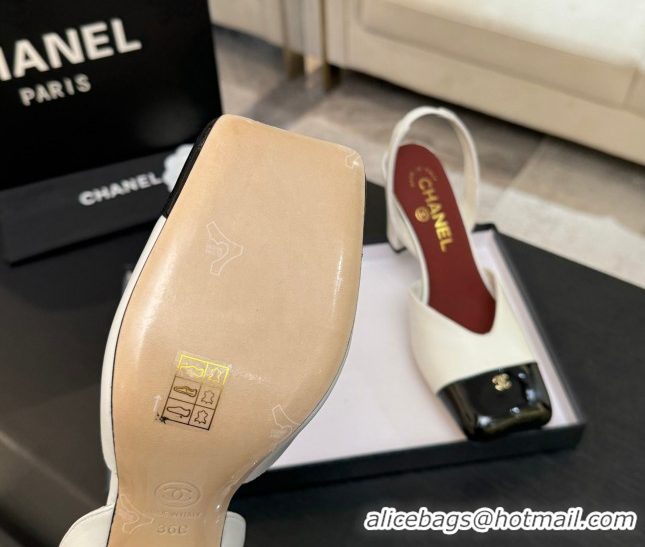Low Cost Chanel Slingbacks in Lambskin & Patent Calfskin 9cm Heel G47204 White Spring Summer 2026