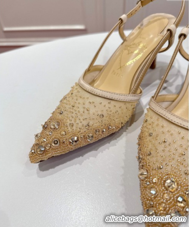 Duplicate Christian Louboutin Miss Z Slingback Sparkling Pump 8.5cm in Mesh and Strass Beige 1030118