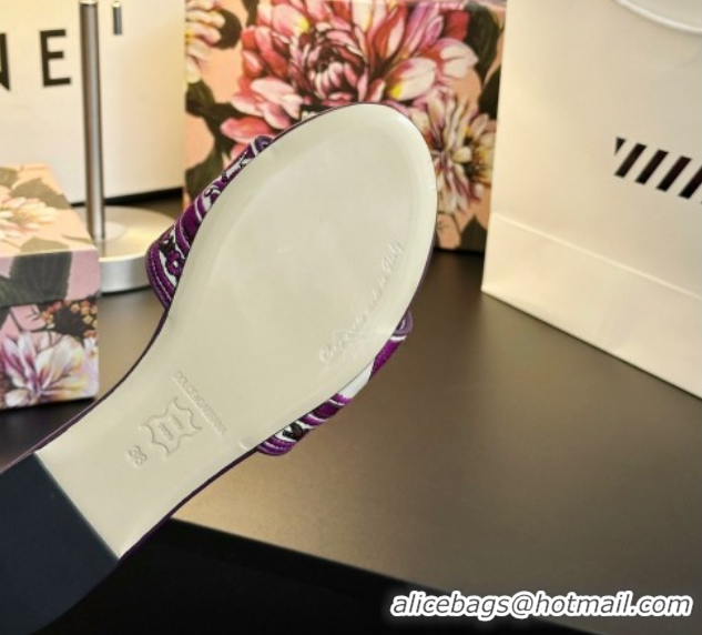 Hot Style Dolce & Gabbana Flat Sliders Sandal in Majolica Embroidery Purple 0825141