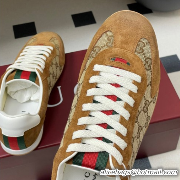 Your Position: Home > Shoes Plaza > Gucci Shoes > Good Product Gucci Washed-Effect GG Canvas and Leather Sneakers Beige/Brown 1021001