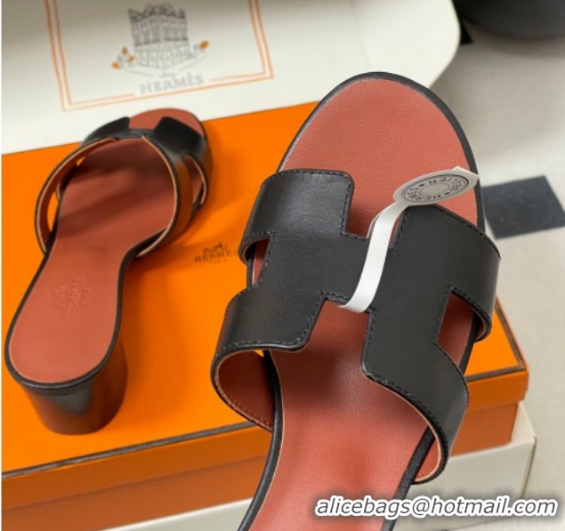 Perfect Hermes Oasis Classic Heel Slides Sandal 4.5cm in Smooth Leather Black 0304107 2026