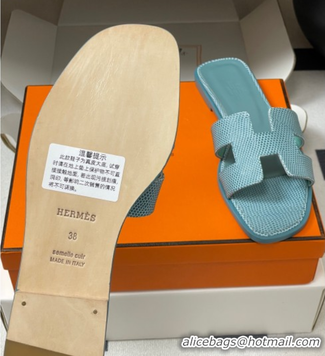 Good Quality Hermes Oran Classic Flat Slides Sandal in Lizard Embossed Calfskin Light Green 2025 H081803