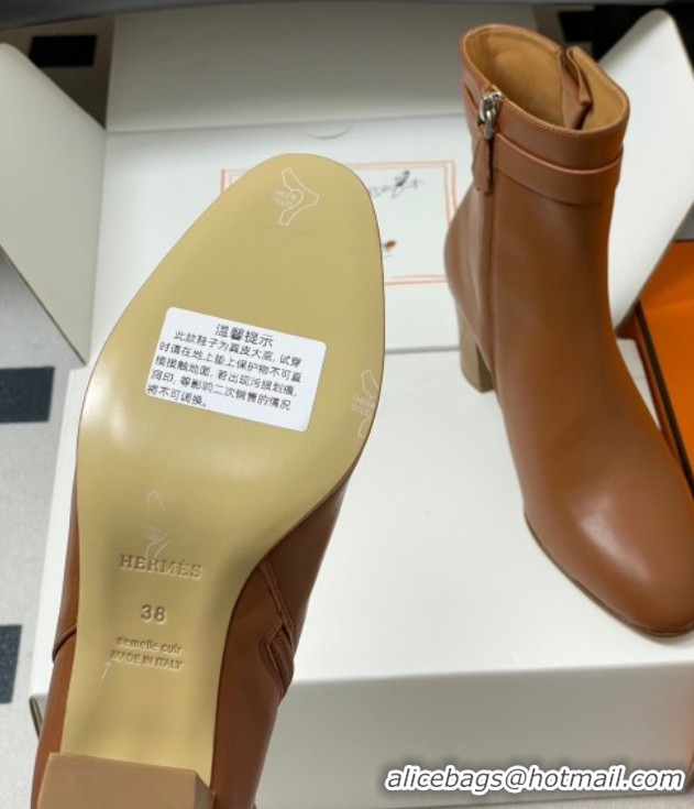 Duplicate Hermes Saint Germain Heel Ankle Boots 7.5cm in Calfskin Leather with Kelly Buckle Brown 1023184