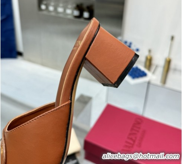 Duplicate Valentino Vlogo Signature Heel Slides Sandal 6cm in Calfskin Brown 0902047