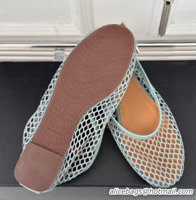 Your Position: Home > Shoes Plaza > Alaia Shoes > Durable Alaia Ballet Flats in Fishnet and Ankle Strap Light Green 1112007