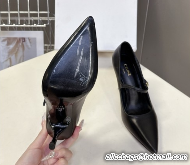 Durable Celine Judy Strappy Mary Janes Pumps 8.5cm in Calfskin Leather Black 1024078