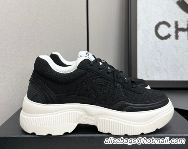 Purchase Chanel Calfskin Leather and Knit Platform Sneakers Black 2025 CH110104 1101046