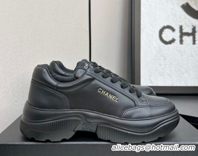Charming Chanel Calfskin Leather Platform Sneakers with Signature Black 2025 CH110103 1101029